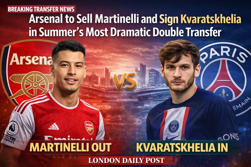 Arsenal are set to reshape their attack this summer in what could be the most dramatic double transfer move of the window, selling fan favourite Gabriel Martinelli for £50 million to fund a blockbuster bid for Paris Saint-Germain superstar Khvicha Kvaratskhelia. The Gunners want a world-class left winger, and the painful decision to part ways with Martinelli is the key to making it happen.