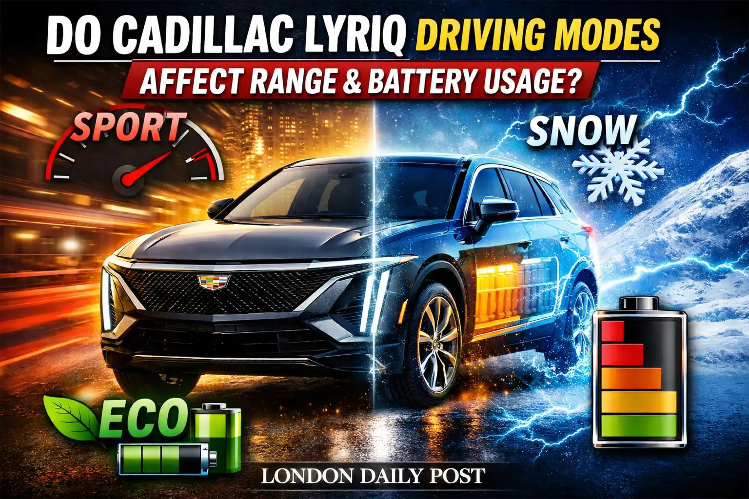 The 2026 Cadillac LYRIQ’s driving modes do meaningfully affect real-world battery consumption — Tour Mode delivers the best efficiency at 2.5 mi/kWh, Sport Mode reduces that by 16–19%, and LYRIQ-V performance modes carry the highest energy cost — but the Ultium battery’s 102 kWh capacity and official EPA ratings remain fixed regardless of mode selection, and owner data consistently shows that tire pressure, wheel size, driving smoothness, and One-Pedal Driving have a far greater impact on actual range than any mode switch ever will.