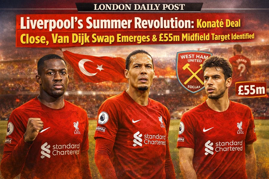 Liverpool FC is facing its most consequential summer in a decade. Three major transfer developments broke simultaneously on April 7–8, 2026: the club is on the verge of sealing a new contract with French centre-back Ibrahima Konaté, Turkish giants Galatasaray have tabled an audacious swap proposal involving captain Virgil van Dijk, and the Reds have already held talks with the representatives of £55m West Ham midfielder Mateus Fernandes, all while preparing to say farewell to the departing Mohamed Salah.